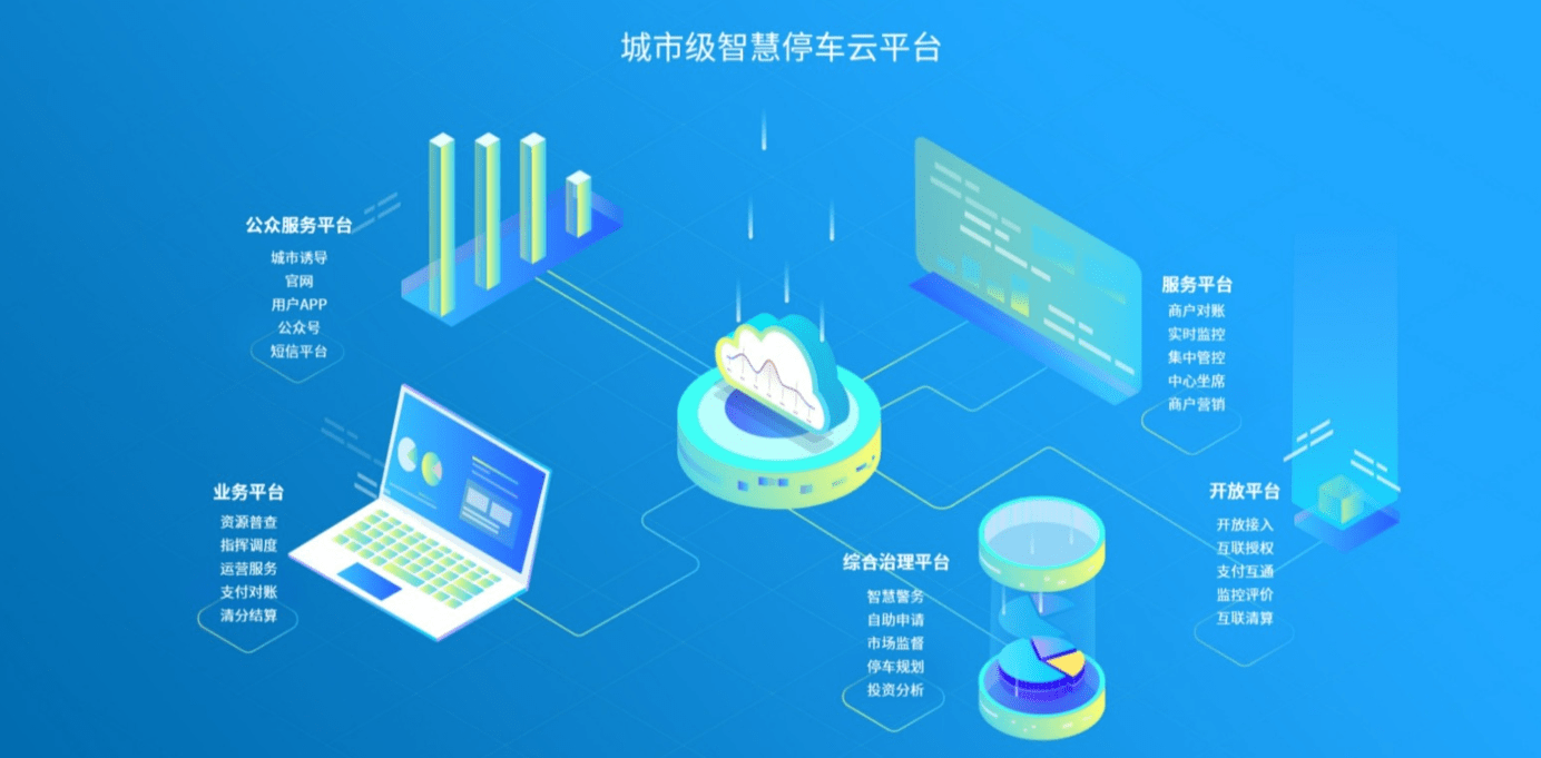 全城停车泊位路外路内一体化,数据互联互通,通过中心管理系统将各场景串联起来,打造智慧城市。